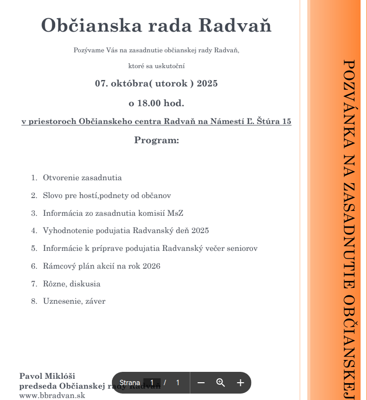 Zasadnutie občianskej rady 7.10.2025 - pozvánka